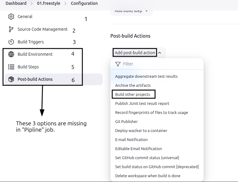 Freestyle Job, configure it underPost-build Actionsduring the job configuration. - For
