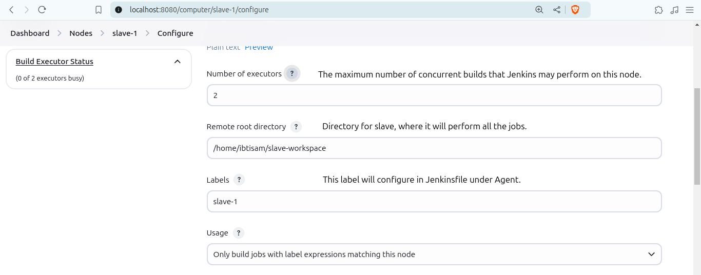 This guide details the steps to configure a slave node for Jenkins. Follow the instructions below: